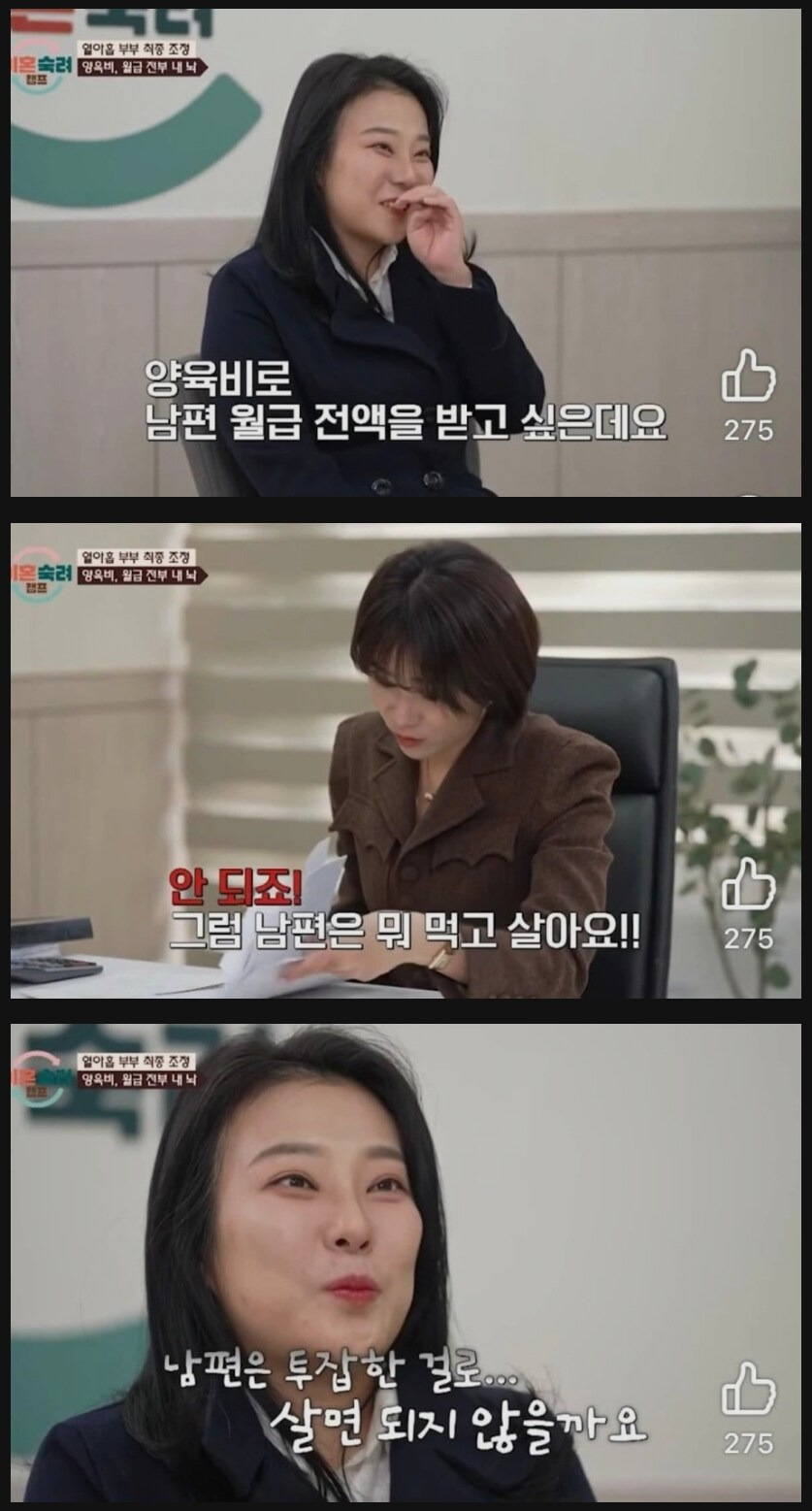 이혼숙려캠프 남편 월급 전부 양육비로 달라고 하는 여자