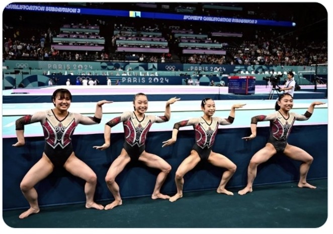 일본 여자체조 대표팀이 결승진출을 확정짓고 펼친 신기한 포즈