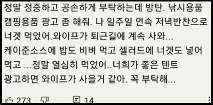 방탄소년단에게 매우 정중하게 살려달라고 sos 날리는 남편