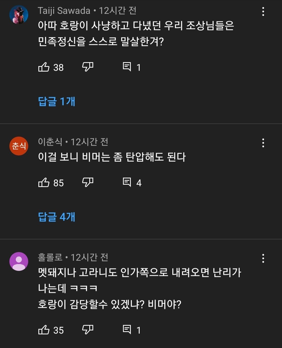 애초에 지금 그러면 관악산 등산하다 가끔씩 호랑이 물려가고 하는게 당연하다는건가?