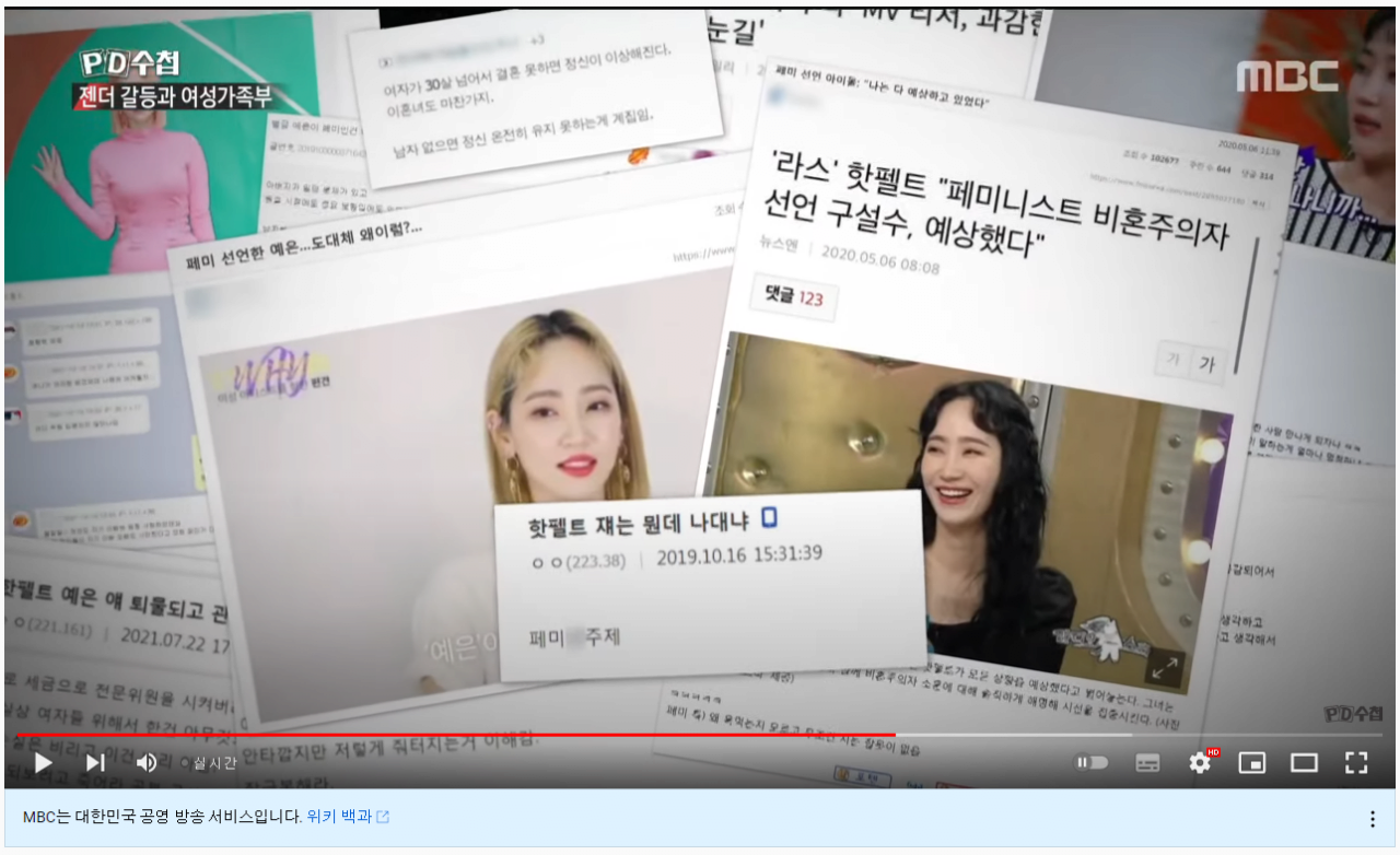 경악 그 자체...페미니즘 옹호하는 PD수첩