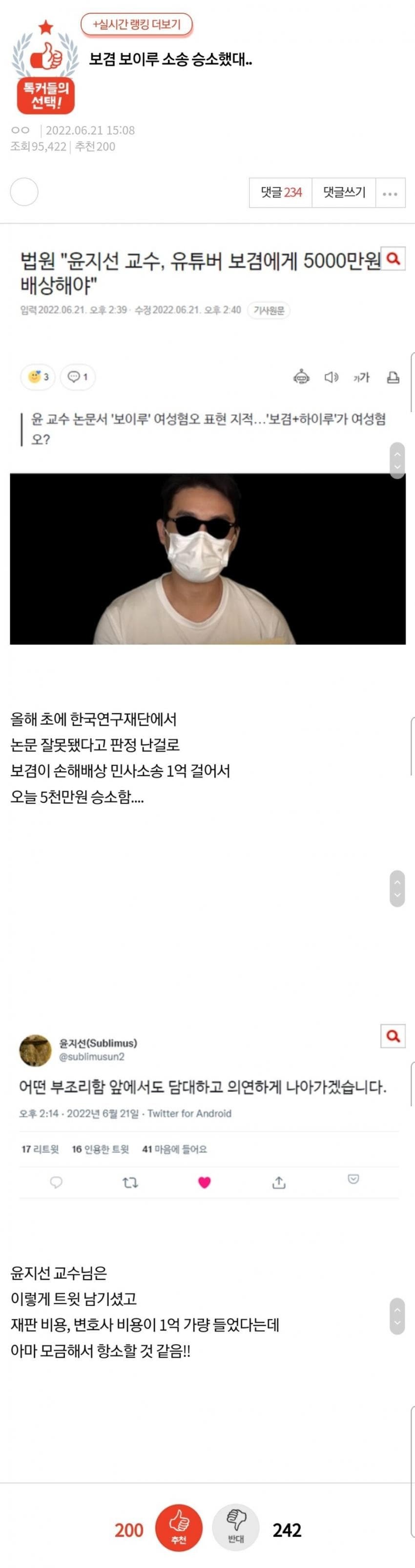 도마뱀 꼬리자르기 당해버림솔직히 난 둘이 왜 싸웠는지도 모르겠고 관심도 없음이거 하나만은 정확하다싸우면 둘 다 손해라는것....보겸 유튜브계의 본좌였는데 이 싸움으로 인해 유튜브도 접고 성형수술도 하고 정말 힘든 시간 많이 보냈을듯유튜브는 8개원 전 영상 이후 감감 무소식이였다가 7월 15일날 영상 하나 올라왔음이걸 보면 아마 슬슬 복귀하지 않을까? 생각이 든다