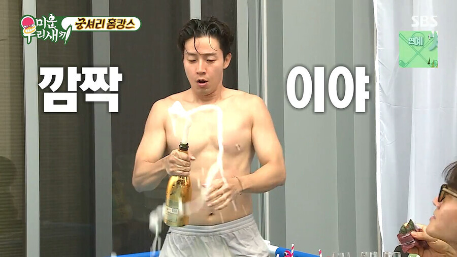김종국 얼굴에 샴페인 터트린 허경환