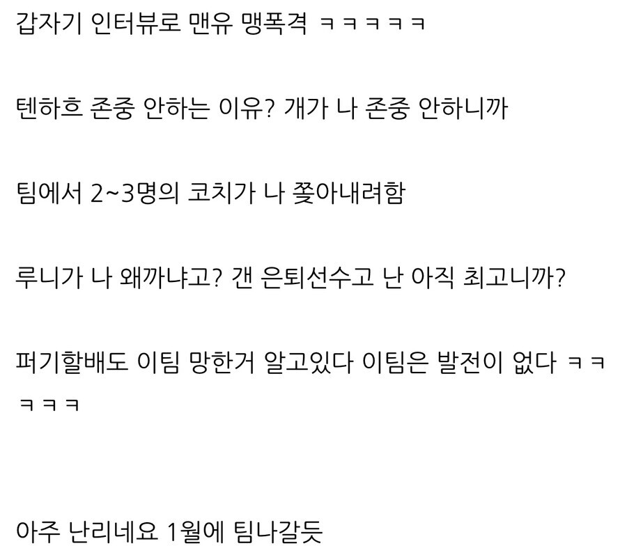 맨유 리턴할 때만 해도 그래도 전설이 돌아오는구나, 팀기강 잡아주겠구나 했는데