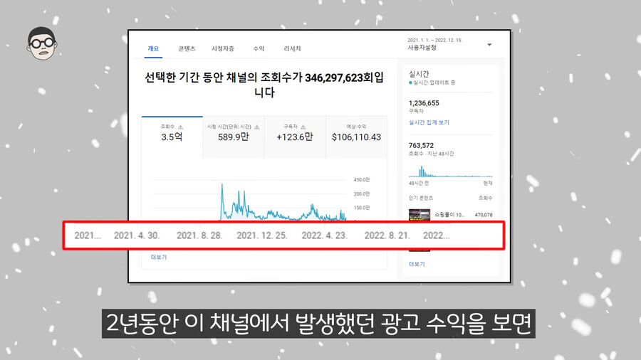 1. 123만 유튜버 2년간 수익이 1억 3천8백만원