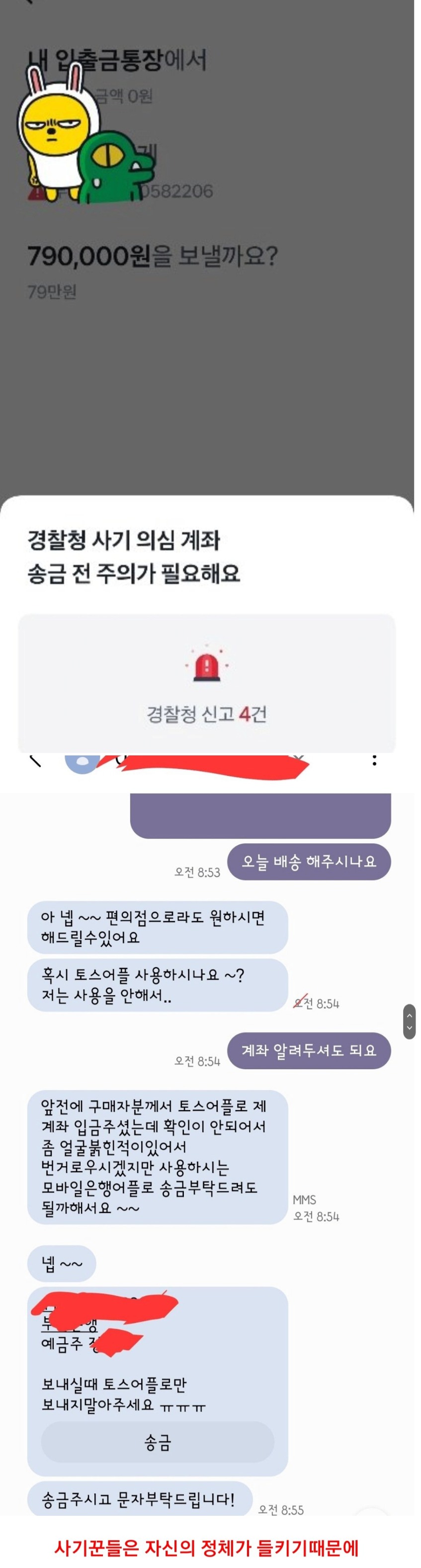 사기계좌 바로 알려주기 때문에 사기꾼들이 토스를 매우 싫어함