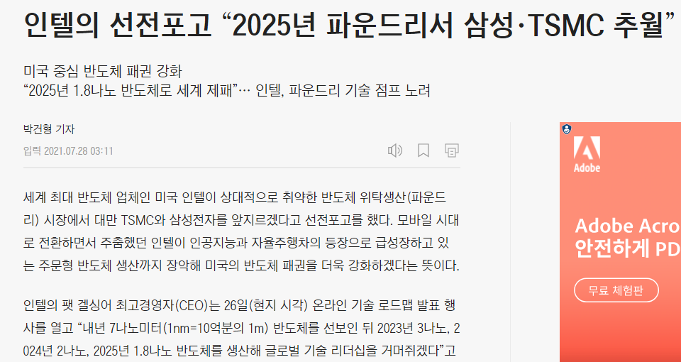 3. 반도체가 애매했는데, 미국정부는 삼전과 TSMC가 아니라 미국기업 인텔을 미는쪽으로 방향을 바꾼것 같음.