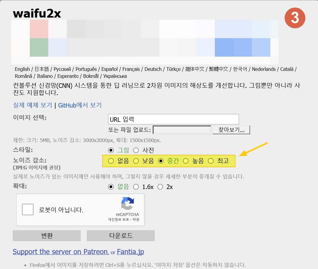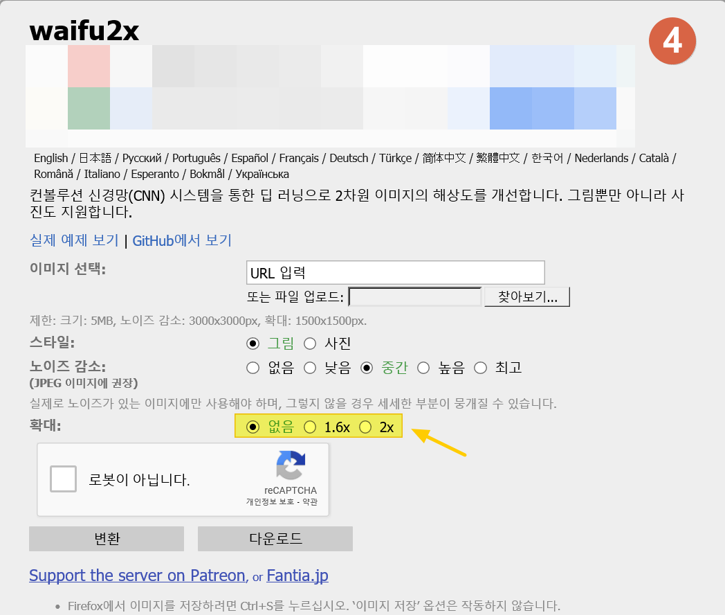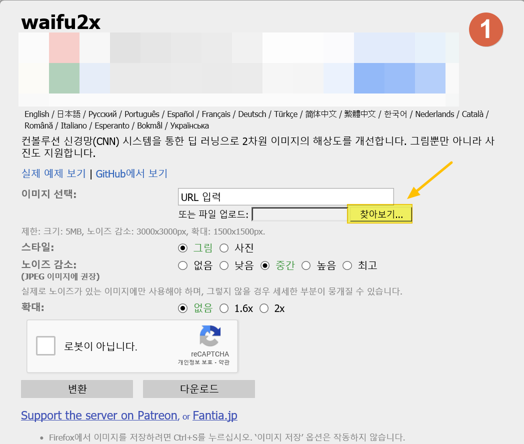 1. 고화질 사진 변환 사이트(waifu2x.udp.jp/index.ko.html)에 접속해 주세요.