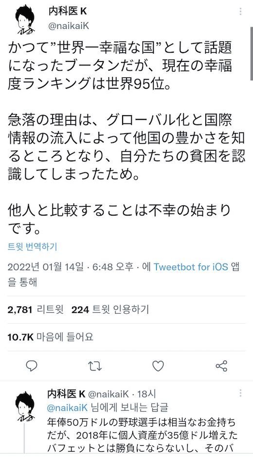 국가 행복도가 저렇게까지 떨어지게 된 이유는 부탄에서 인터넷과 SNS 등의 발달로 인해서