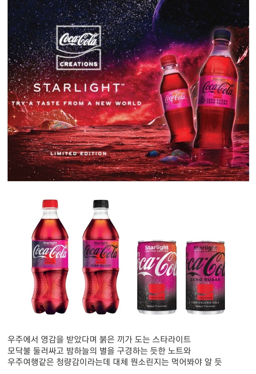 우주를 느낄 수 있다는 별빛맛 미국 신상 코카콜라 익명3 1 1955 0 0 2022.02.23 01:35 이게 왠 안드로메다 마케팅이냐실제 미국인들 후기 몇개보고 왔는데 시나몬 + 솜사탕 이런 뉘앙스라고 하네.성공스러운 맛은 아닌듯. 튜닝의 끝은 순정이제. 0 0