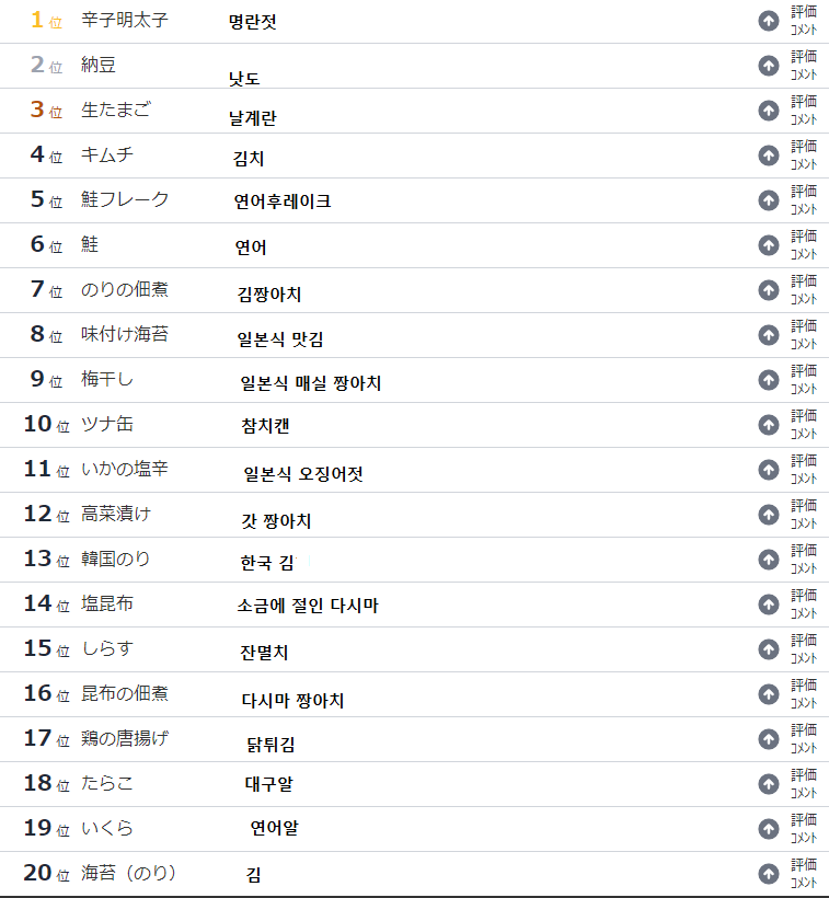 일본인들이 좋아하는 반찬 순위 익명9 1 2347 0 0 2022.03.07 15:36 이렇게 먹으니 살이 안찌는구나명란젓이 1위김치가 무려 4위 ㄷㄷㄷ일본이 진정한 형제의 나라다참고로 일본인들한테 광천김같은 낱개 포장된거 선물하면 진심 좋아함 0 0