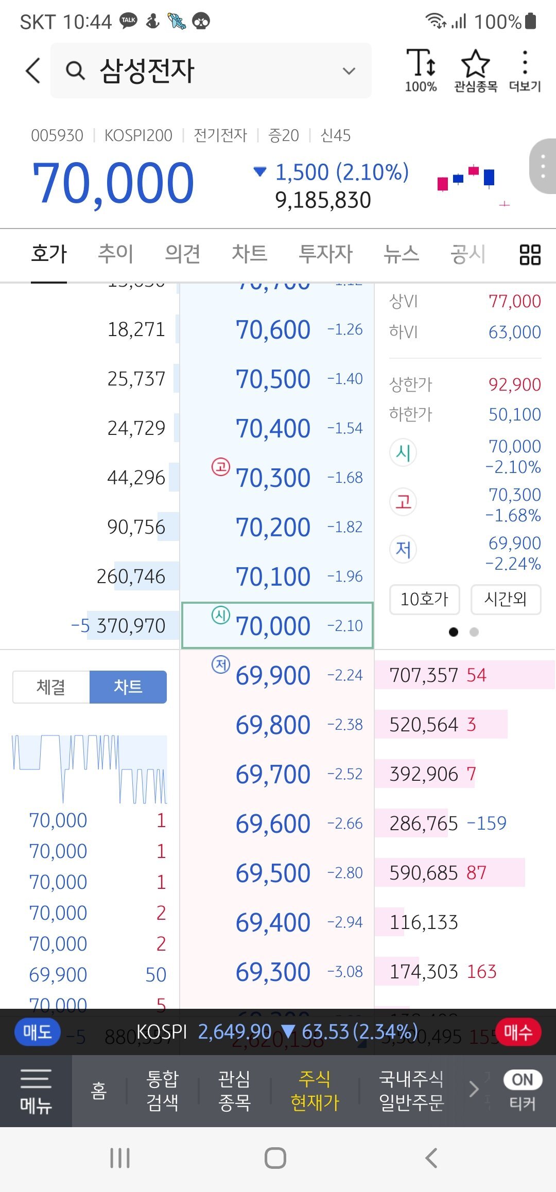 삼성전자 주식 7만원대 깨짐