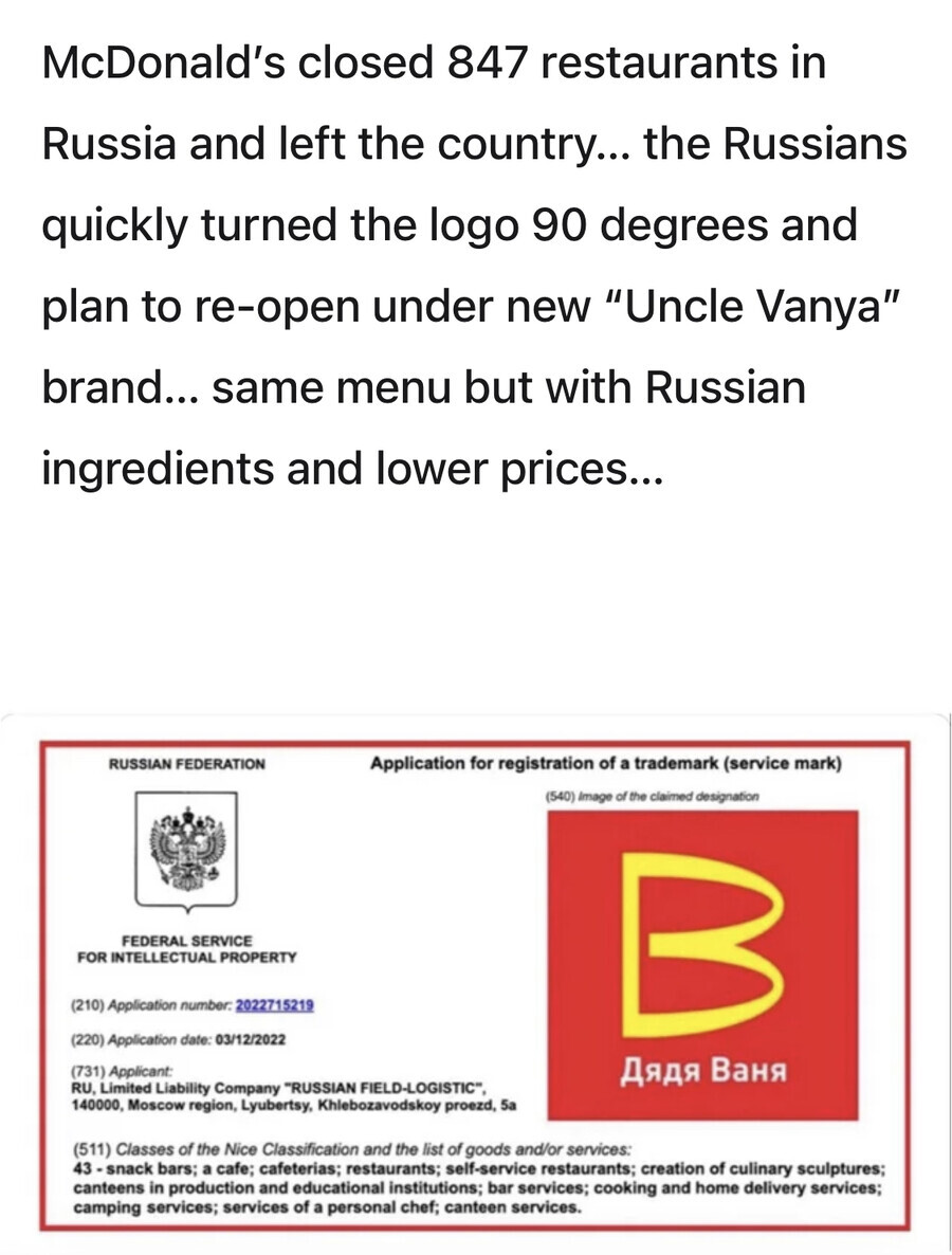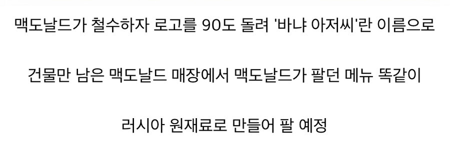 러시아 맥도날드 충격 근황. JPG 익명6 1 1979 0 0 2022.03.23 15:19 호밀빵으로 만든 번 쥐고기로 만든 패티 순무로 교체된 양배추 보드카로 교체된 콜라 이렇게 나오는건가....내가 러시아 사람이면 진짜 쪽팔리고 자괴감 들듯 0 0