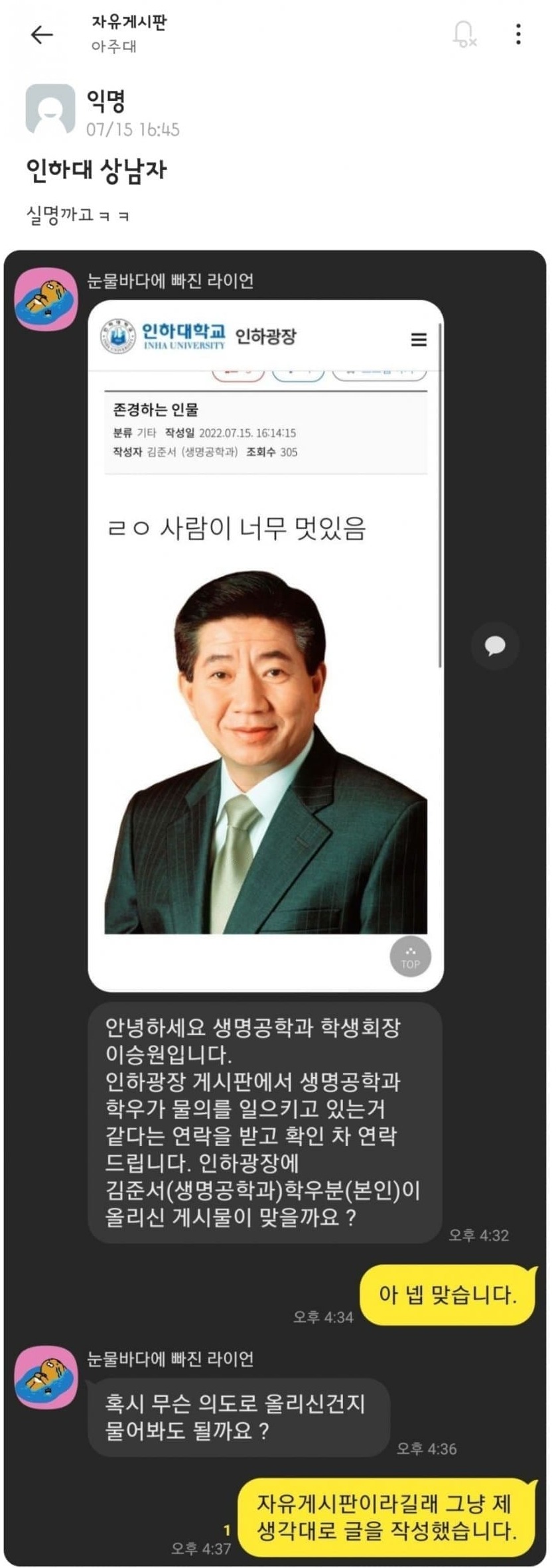 인하대 물의 일으킨 사건