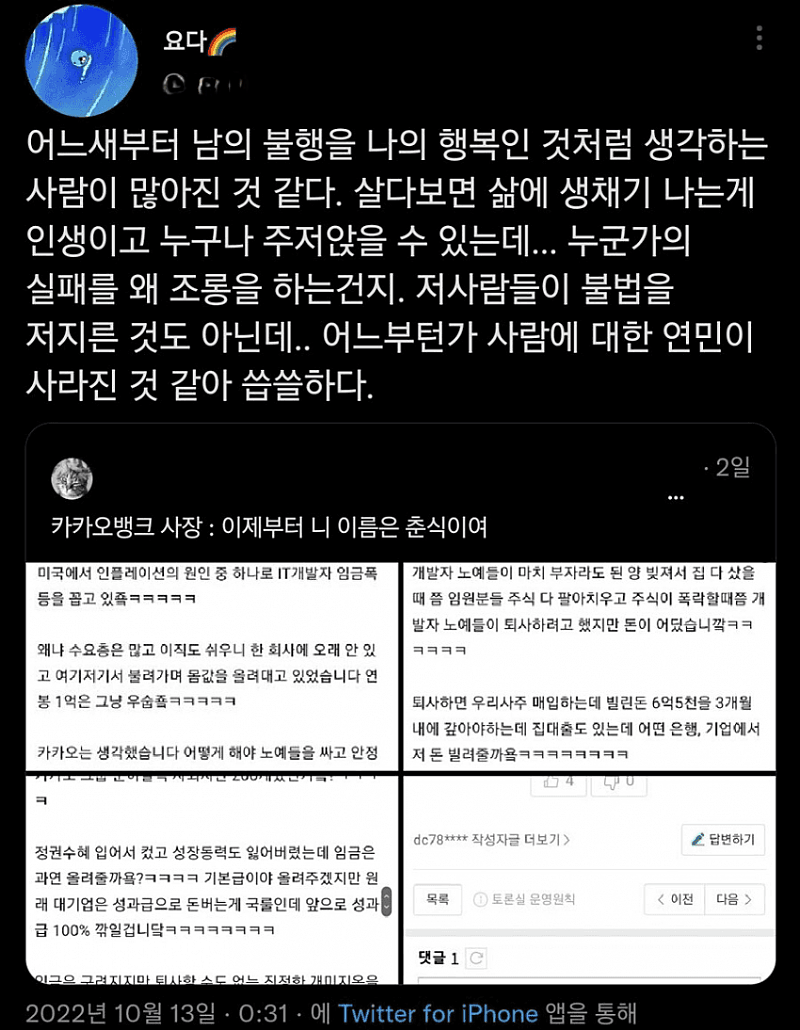 착한척 정의뽕 맞은 페미의 이중성 익명5 1 889 0 0 2023.08.20 19:50 ?????내로남불 이건 착한척 깨어있는척 하는 애들 공통점인듯원래 듣기 좋은 말, 바른 말 하는 건 쉬움.그걸 실천하는 게 어려운 거지페미하는 것 자체가 성평등을 가장한 남성혐오 사상인데, 이딴 사상을 지지하면서 정의로운척 하는것 자체가 모순이지 0 0