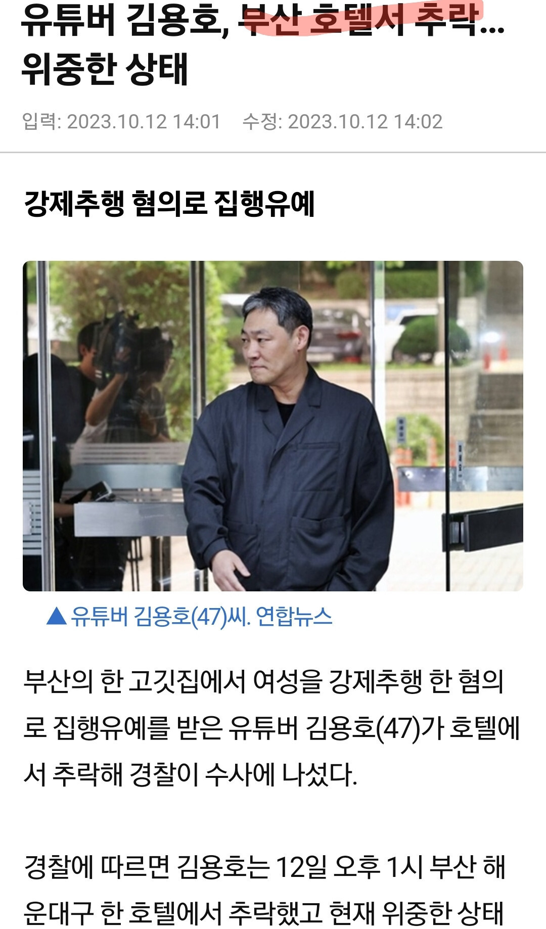 극단적 선택 김용호, 호텔에서 뛰어 내려 추락 익명6 1 1163 0 0 2023.10.12 16:55 갑자기 이렇게 가다니믿기지 않네참고로 김용호는 독신이 아니라 부인 최정주가 있고 딸 김소하가 있음많이 힘들었던것 같은데 가족 생각해서 좀 더 참아야 하지 않았을까 싶다 0 0