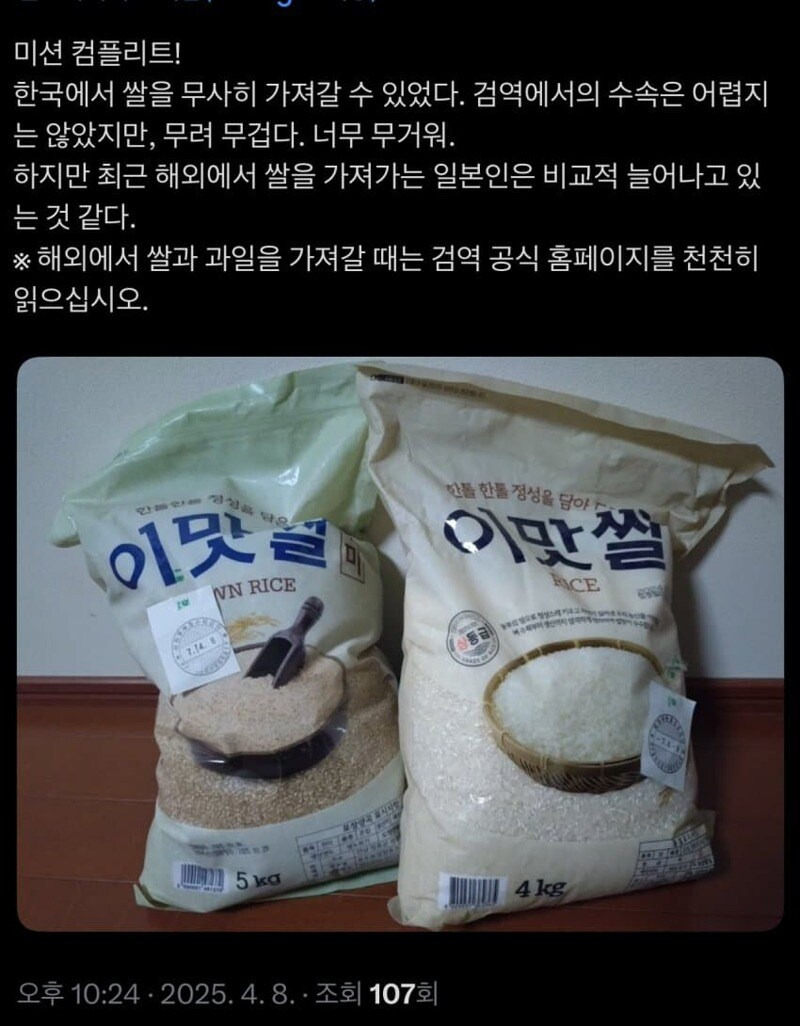 쌀 가격이 얼마나 비쌌으면 저 무거운 쌀을 한국에서 굳이 사들고 가냐...