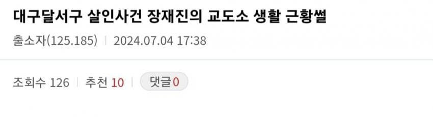 열람중 대구 교도소 수감자가 겪은 달서구 살인마 장재진 댓글+1 G 울지마 01.11 461 0 0