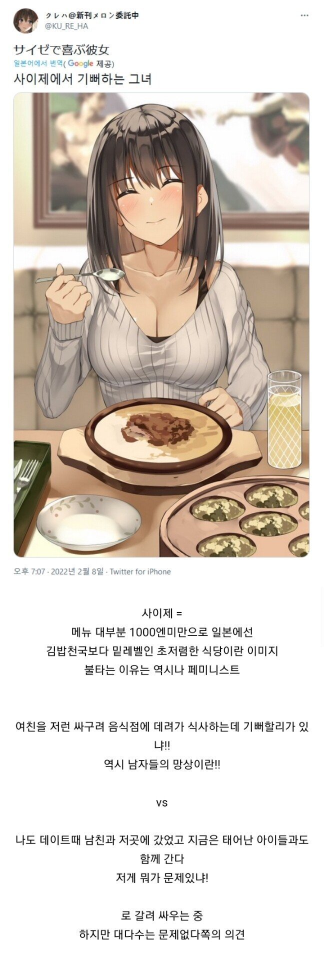 한국 여자들은 데이트때 김밥천국 가는건 모독이라며 개거품을 무는데...