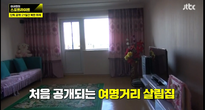 평양에서 요즘 제일 뜨는 여명거리 동네취재왔으니 당에서 엄선한 집 일텐데 수준 ㅋㅋㅋㅋ그나마 저건 상위 1% 막짤이 99% 실생활 ㅋㅋ여명거리 아파트 통일되면 다 헐어야 한다.한국 건축기준 쓸 수 있는 건물이 하나도 없음.기초공사 파일 적게 박은 것이 제일 큰 문제지만,하수관과 오수관 구별도 없는데 벽과 바닥을 다 뜯을 수도 없어서 어차피 다 헐어야 함.비오면 대동강 오수관 역류해서 세대별로 다 모여 똥물 퍼내기 바쁨.