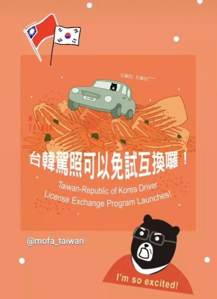 그리고 중국이 김치 하도 지들꺼라고 염병떠니까 대만 외교부에서 배경에 김치 박아버림
