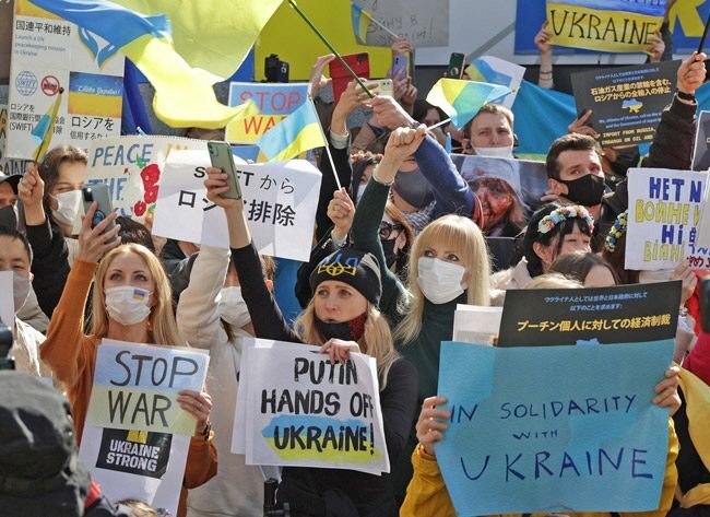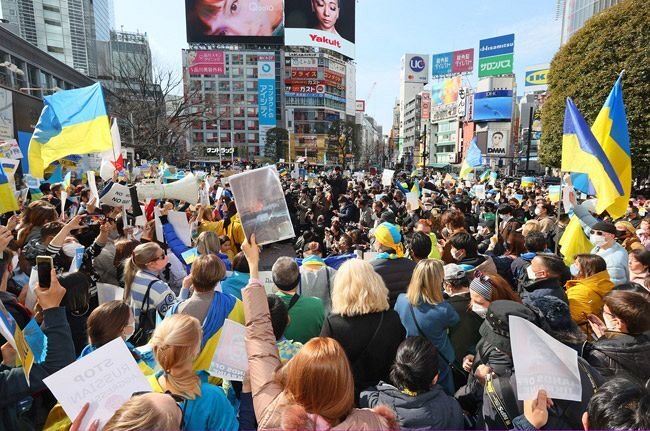 난민들이 러시아 담당 일진 일본에서 전쟁 멈추라고 호소중