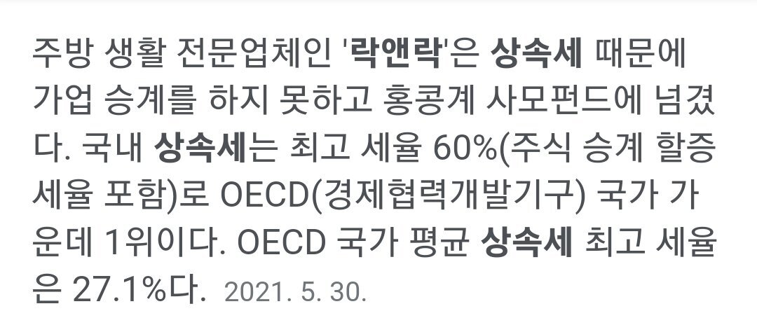 어차피 재벌2세들 상속세 내도 대대손손 부자로 놀고먹음,