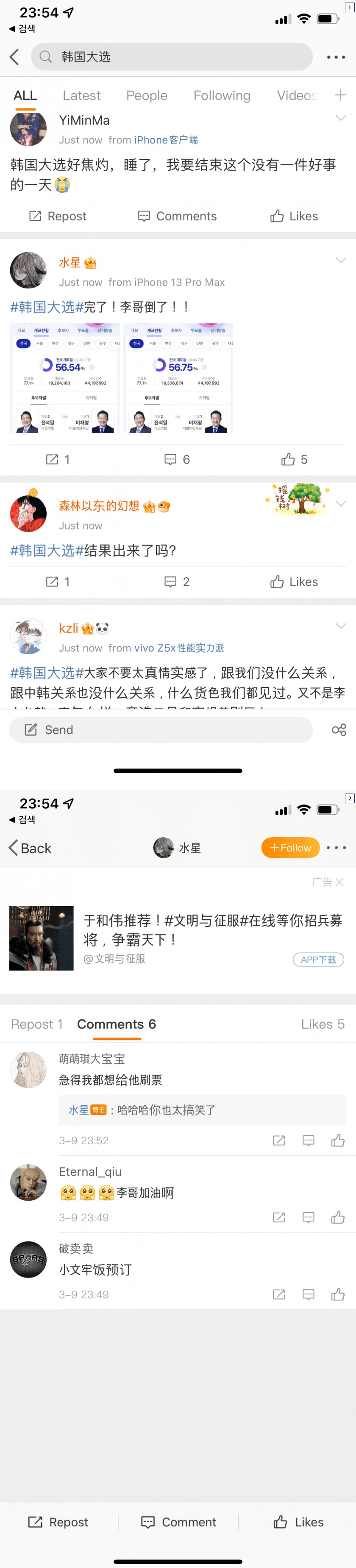 윤석열 대통령 당선 유력 중국인들 반응