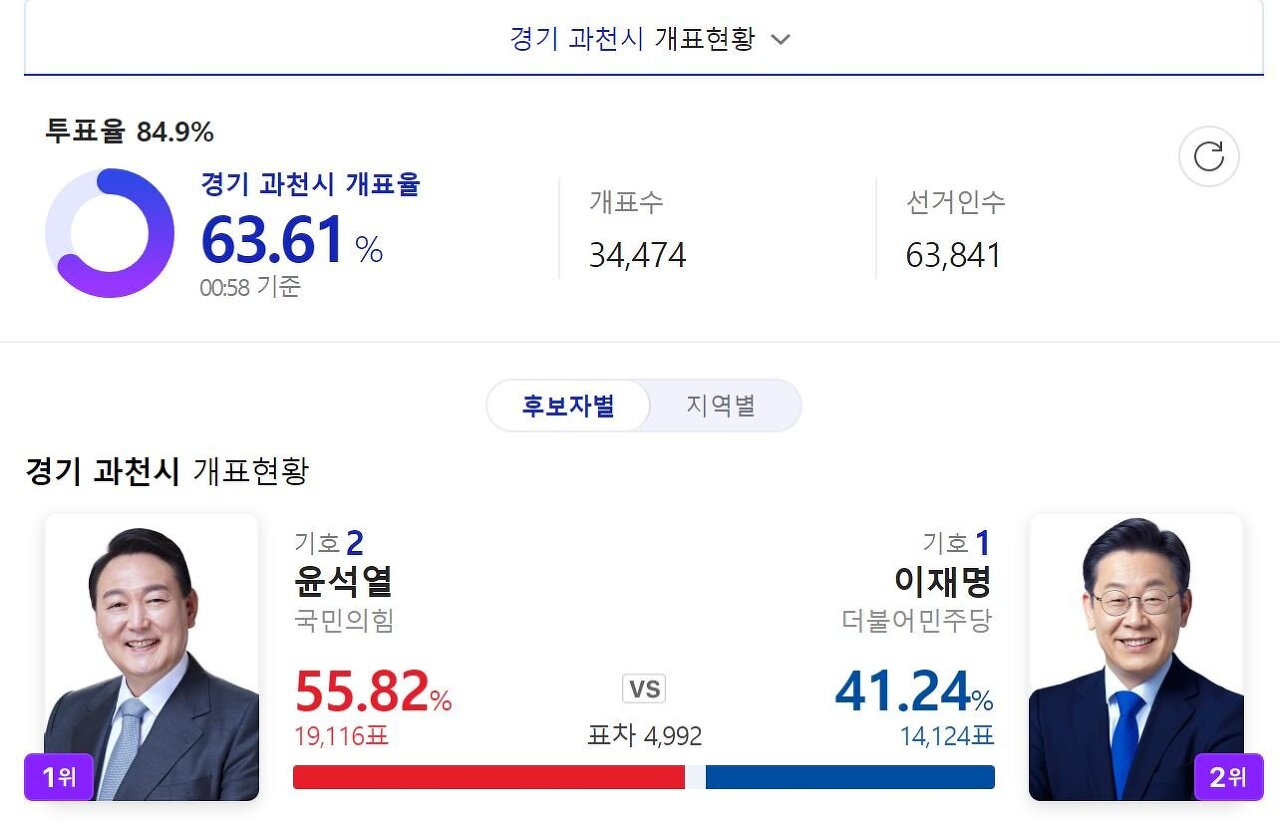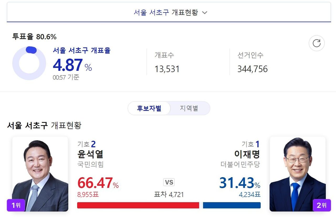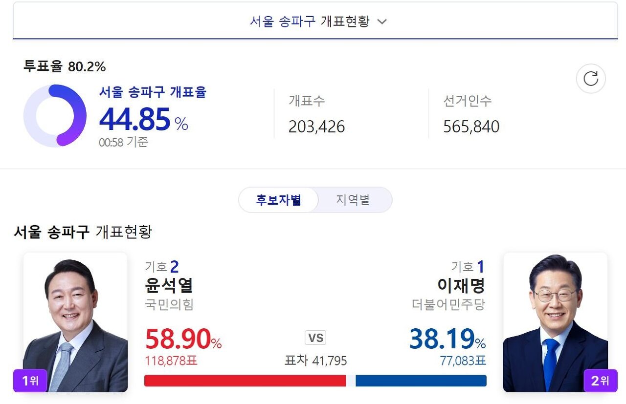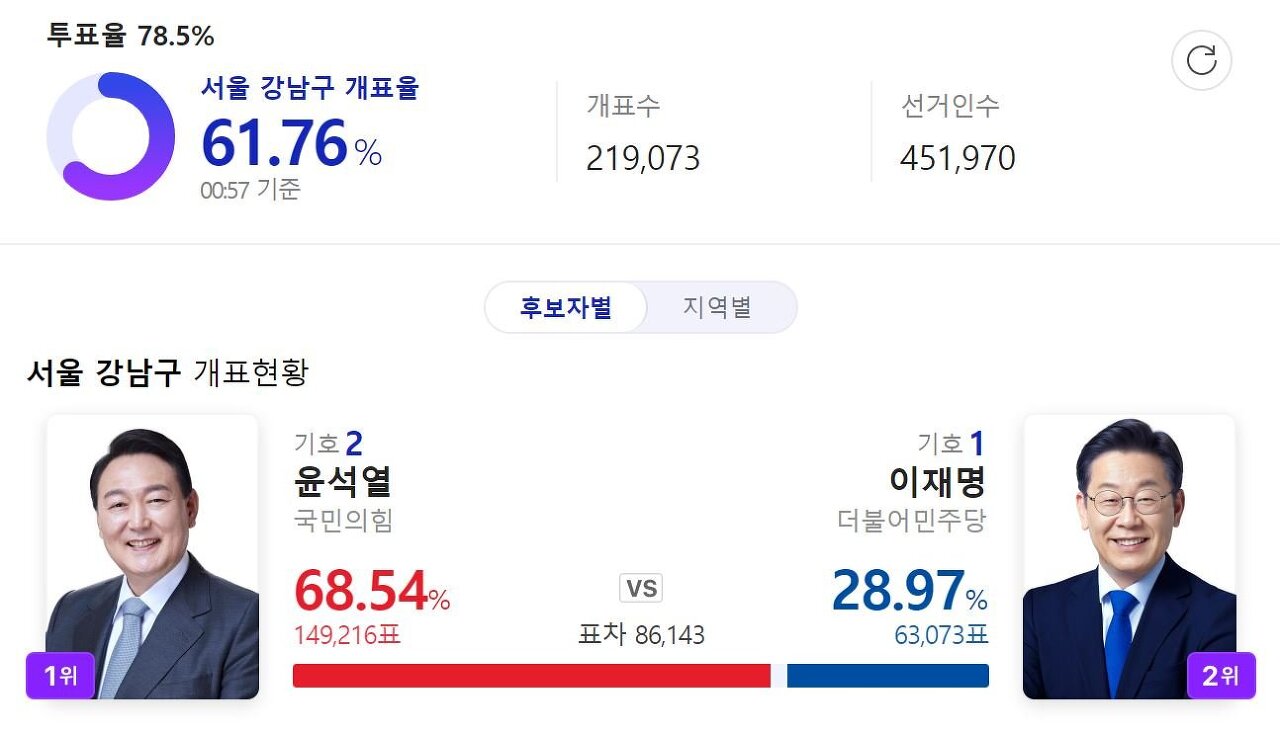강남 3대장 강남구 서초구 송파구 선호 후보와 투표율