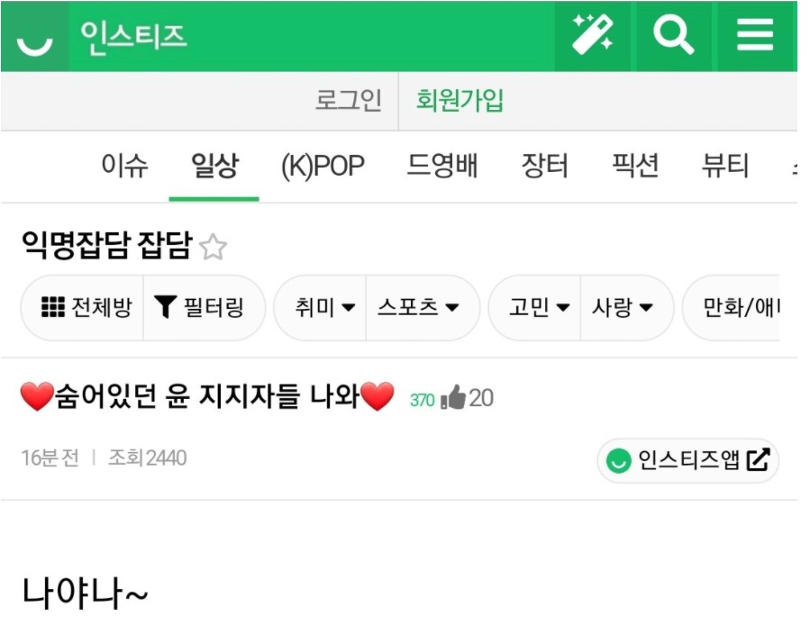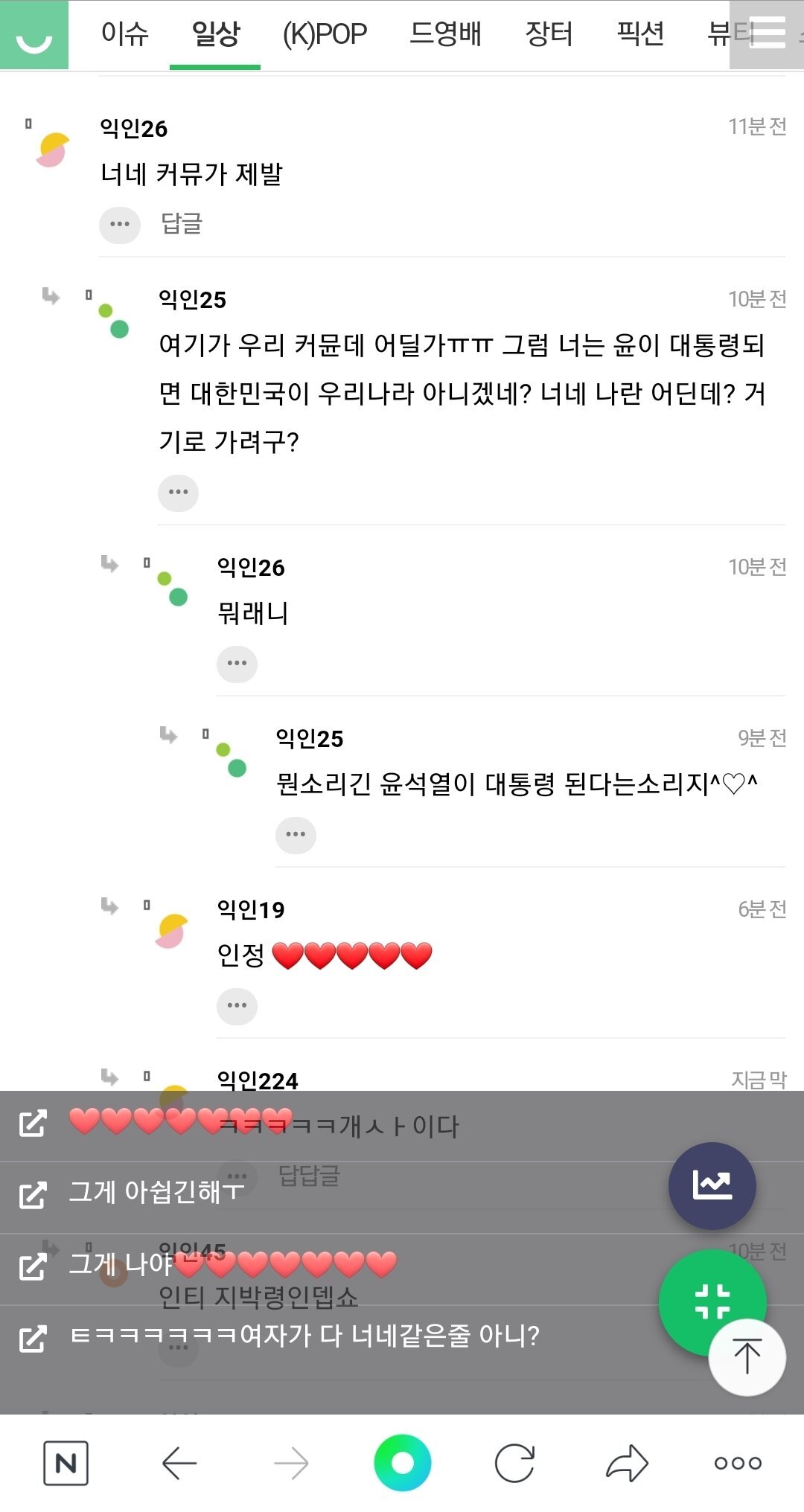 역전되는 순간 숨아있던 윤지지자들 출몰