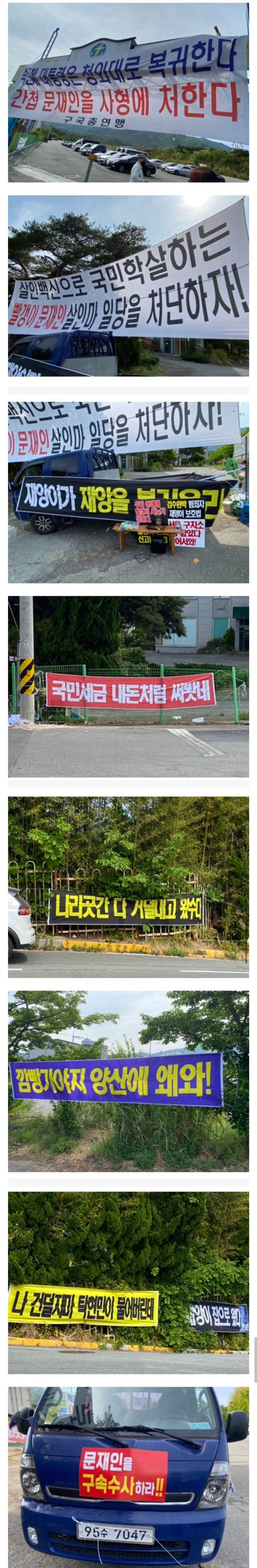 문 전대통령,고향 사람들이 환영해주는게 아니라 저승사자가 기다리고있는...양산이네요..