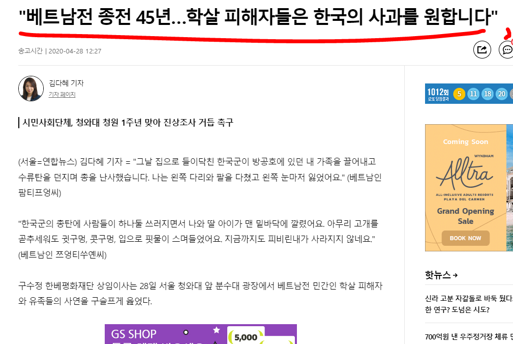 베트남 ... 한국의 진정한 사과와 보상을 바란다