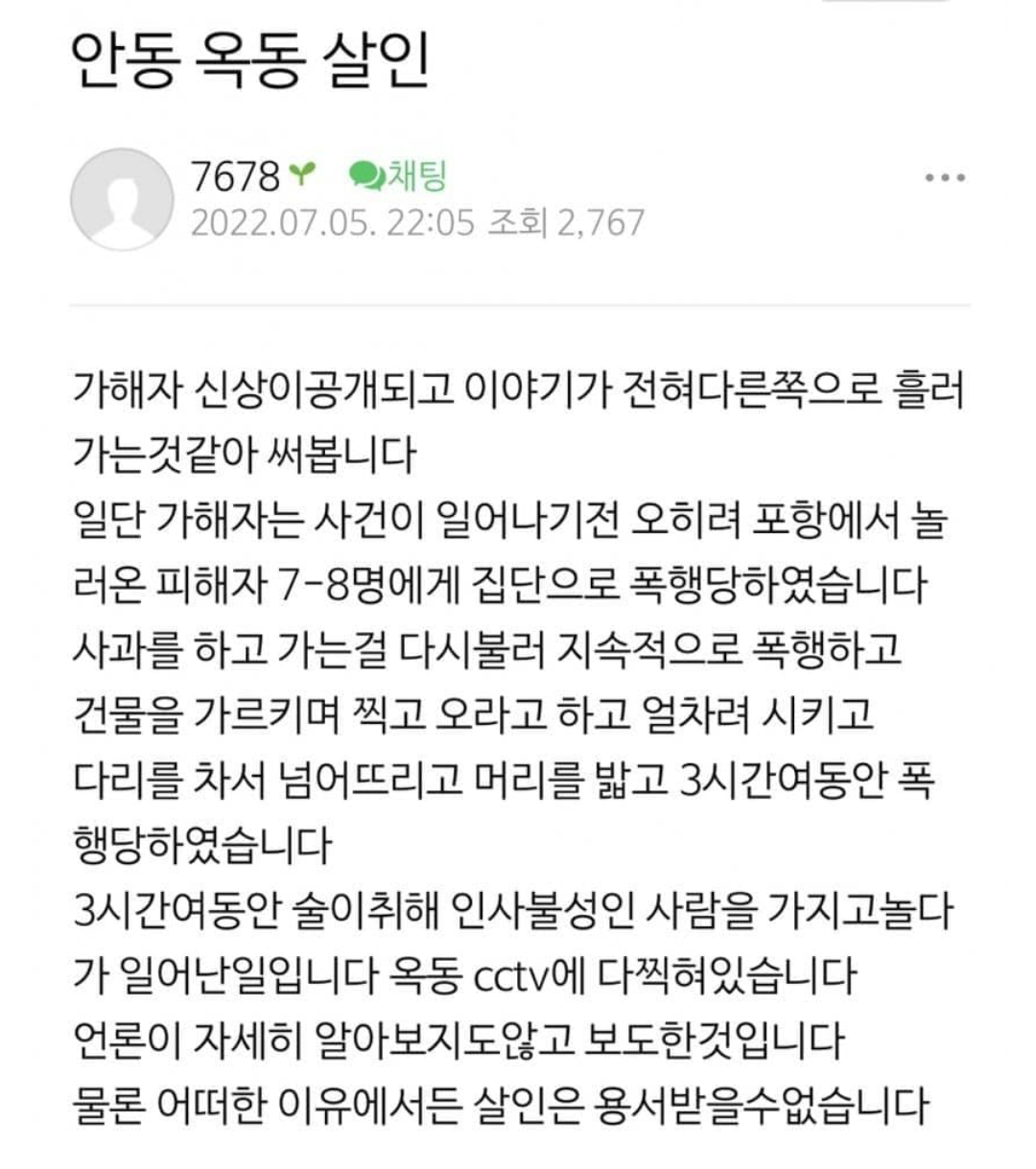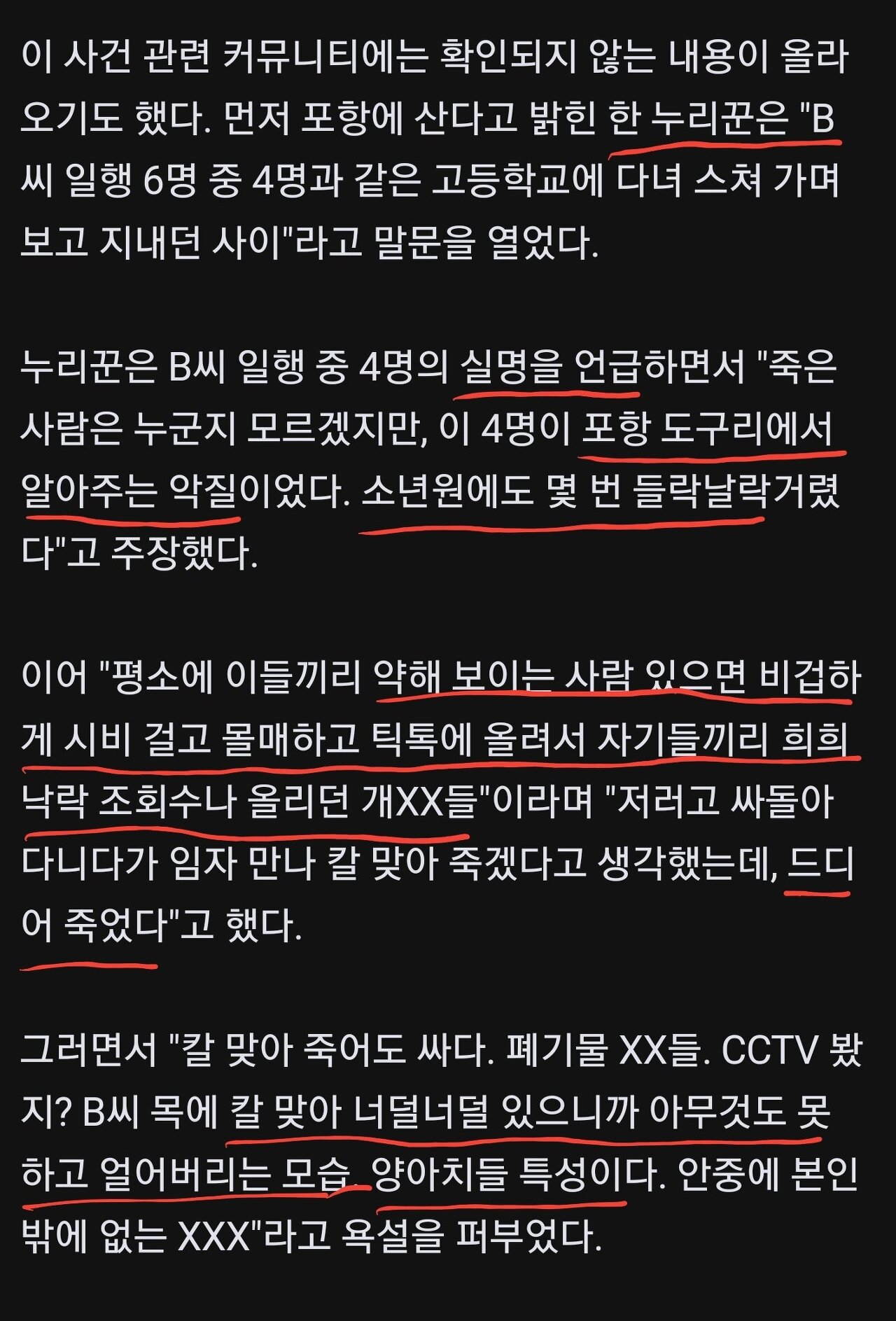 포항 양아치 지인 증언 보면 평상시 약한 사람에게 시비걸고 다니던 사람이였음