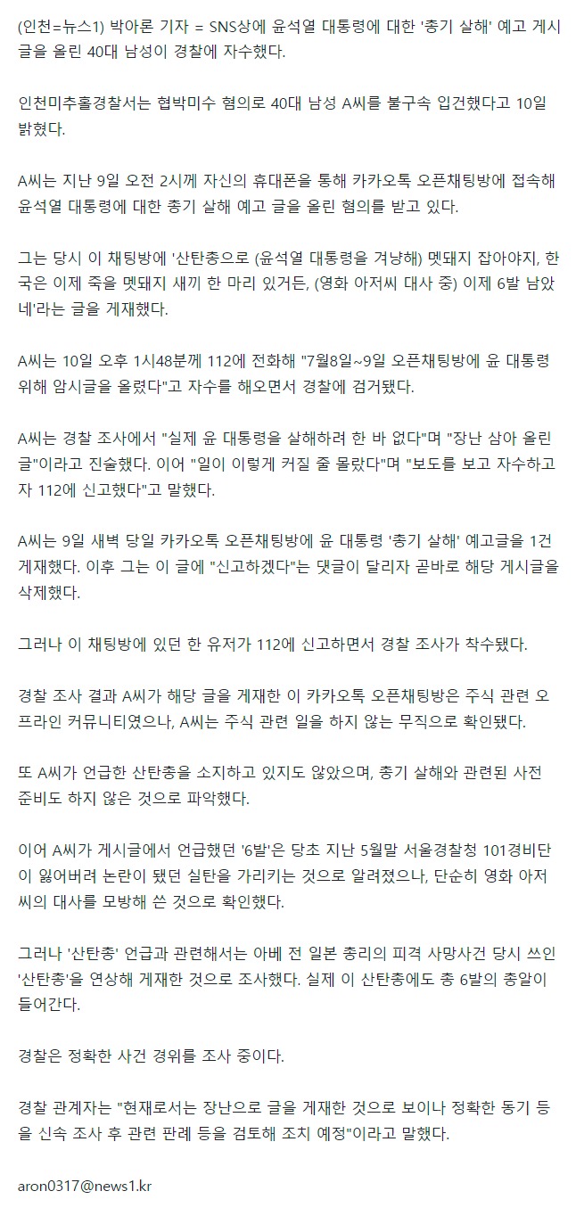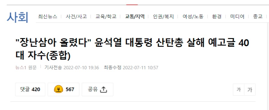 윤석열 대통령 암살 협박하길래 친절하게 신고 넣어줌결과는?
