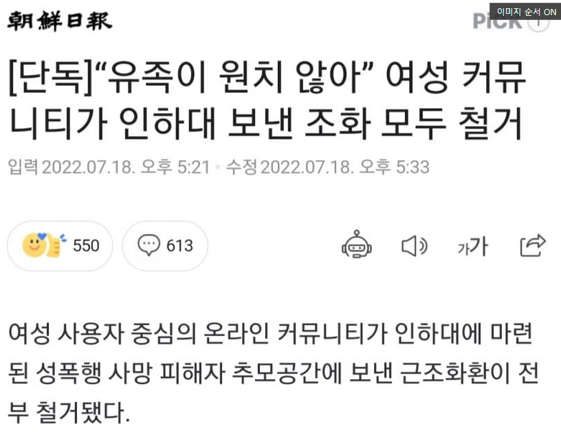 여초 커뮤니티가 인하대에 보낸 악질 화환...대참사
