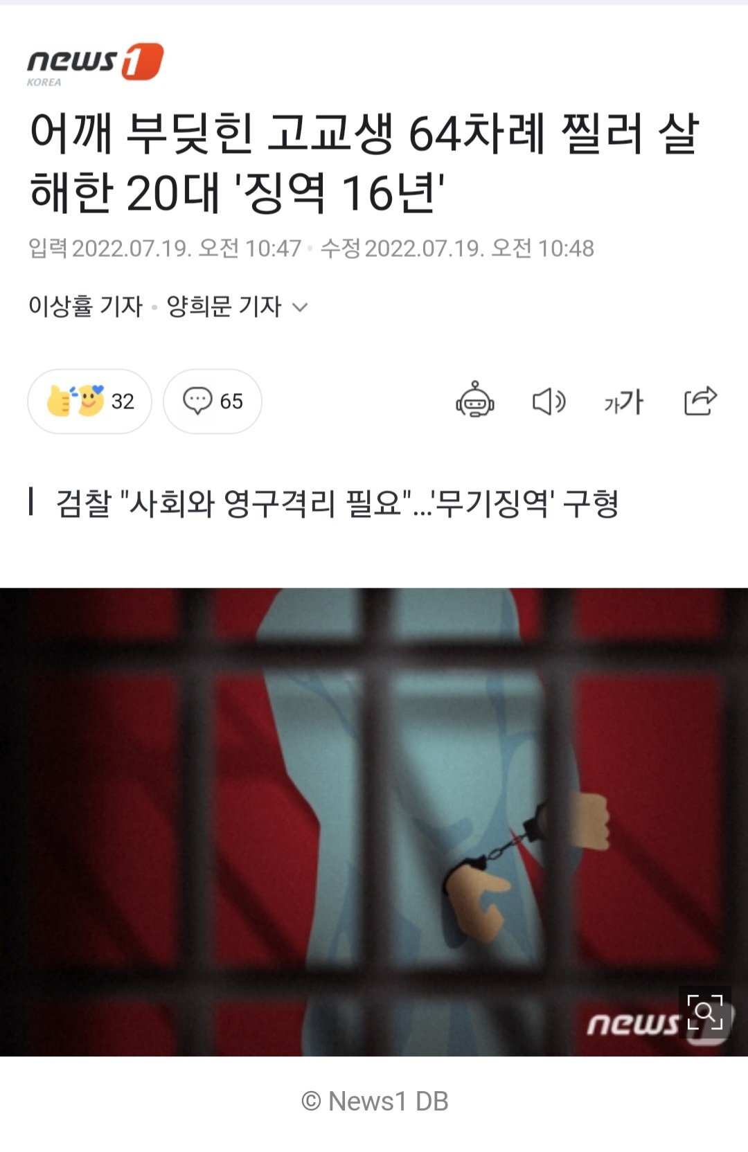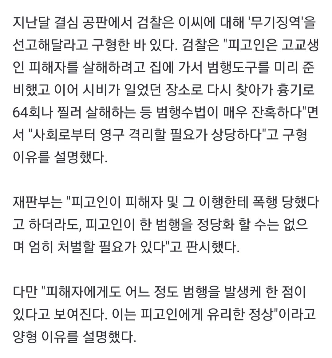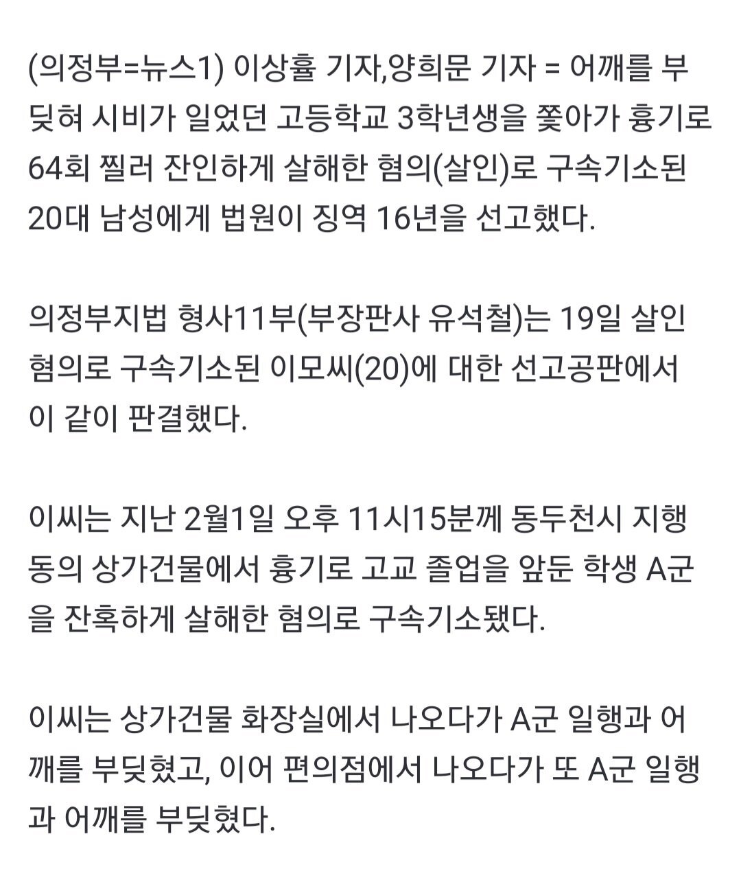 김성수랑 비슷한 사례인데 걔는 30년이고 이건 16년이면 죽은 피해자가 얼마나 가해자한테 모질게 지랄했다는건지 짐작도 안됨.