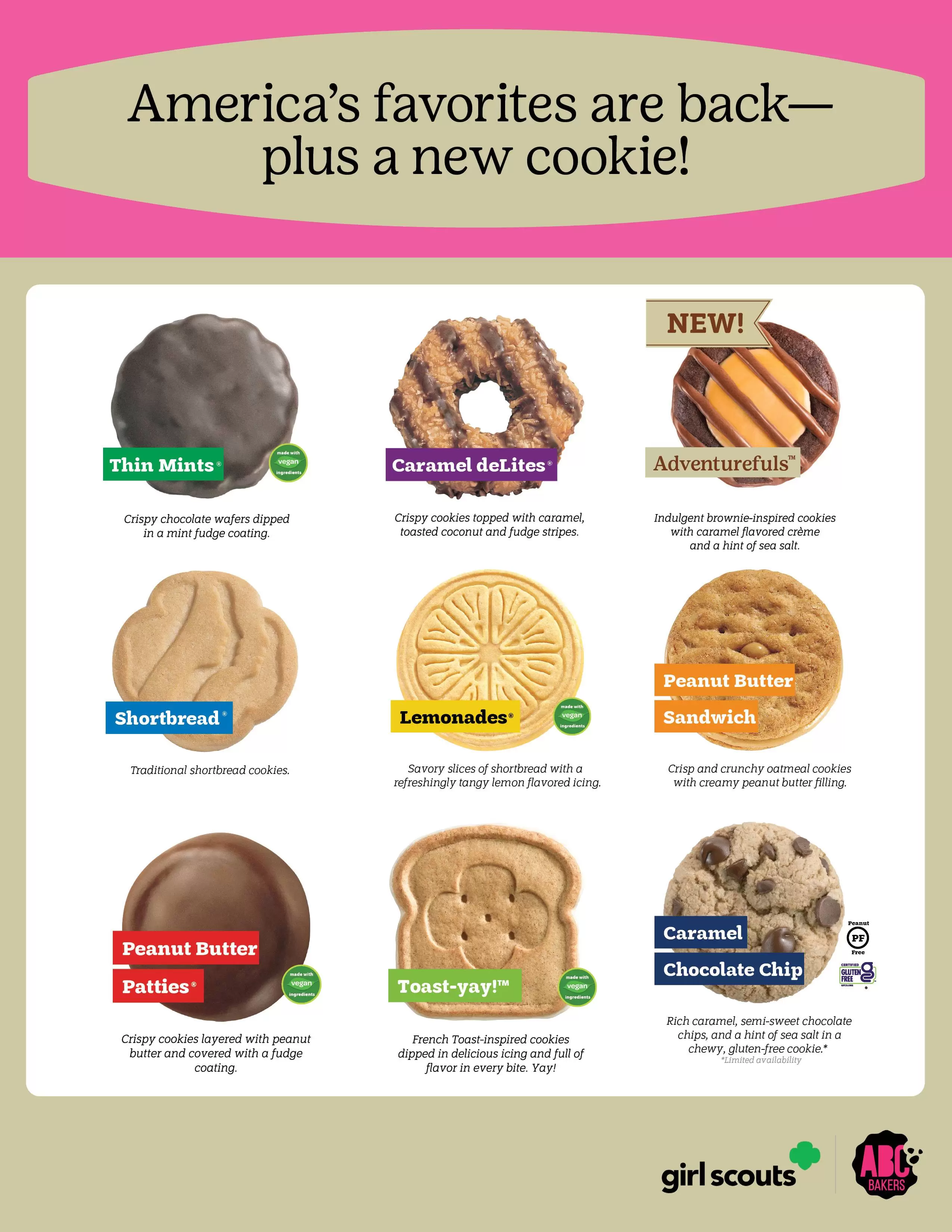 Caramel delites와 Lemonades가 가장 인기있는 쿠키이다.