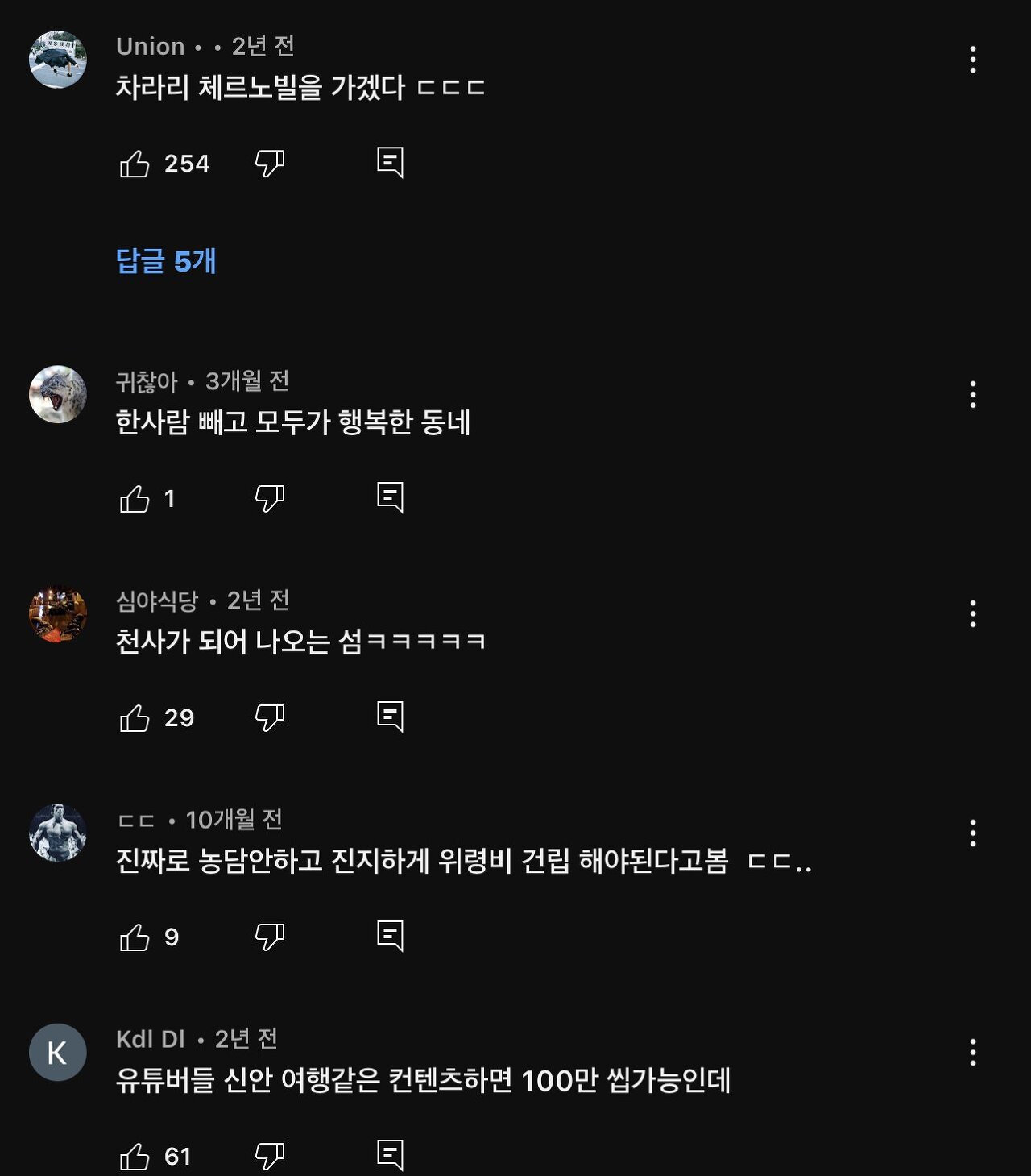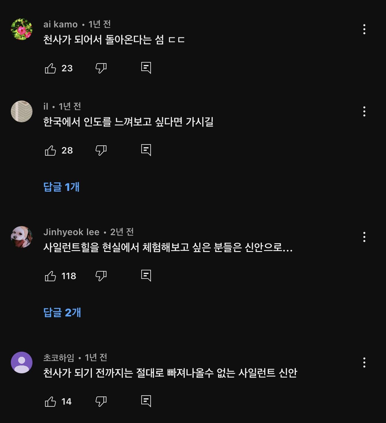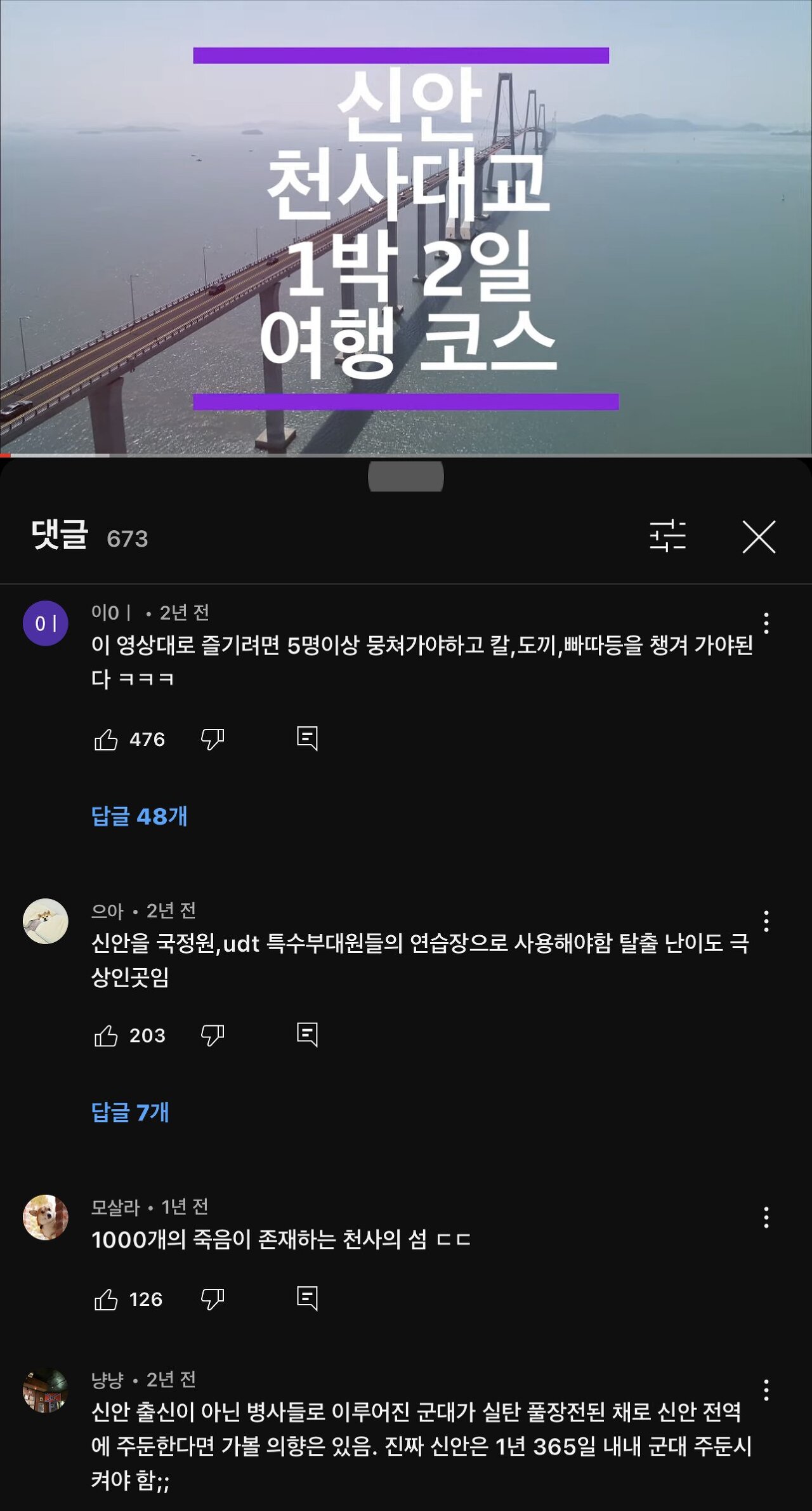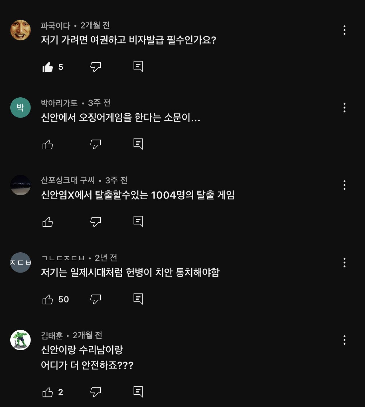 천사의섬 신안군 여행 유튜브 댓글 ㅋㅋㅋ