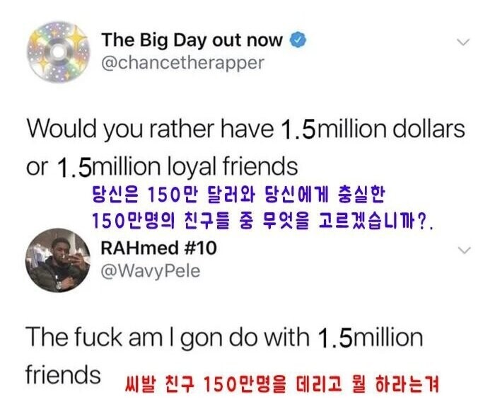 나에게 충실한 친구 150만명 VS 150만달러(20억)