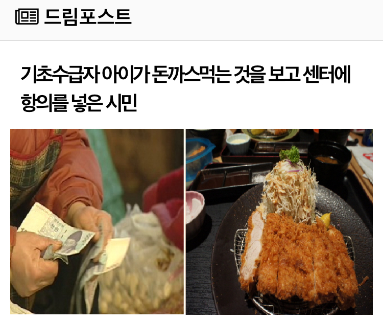 그리고 그걸 보고 속이 뒤틀린 불편한 사람이 식권으로 고오오오급 돈까스를 먹어도 되느냐며 민원 넣음