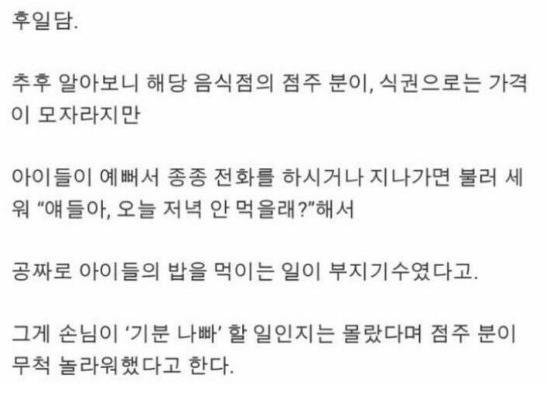 가정형편 탓에 식권을 지원받는 아이들에게 사장님이 언제든 와서 편하게 먹으라며