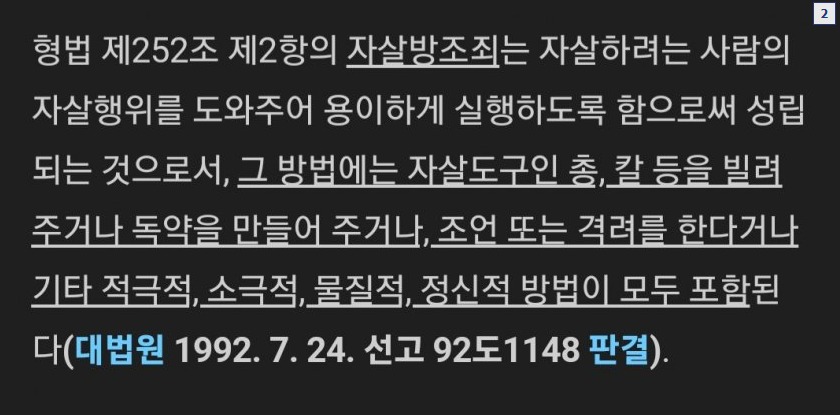 따라서 애용이가 자살루트를 적극적이든 소극적이든 알려줬다면 실행의 착수가 인정되.