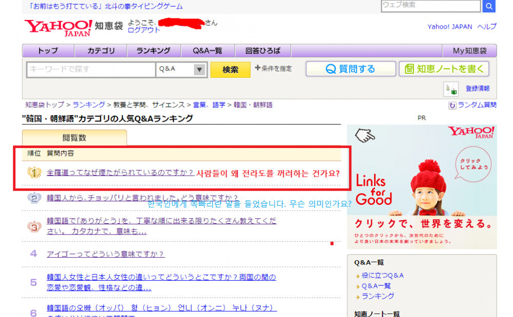 일본판 네이버 지식인 야후 재팬 지혜 보따리에서