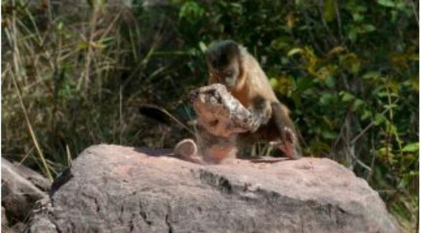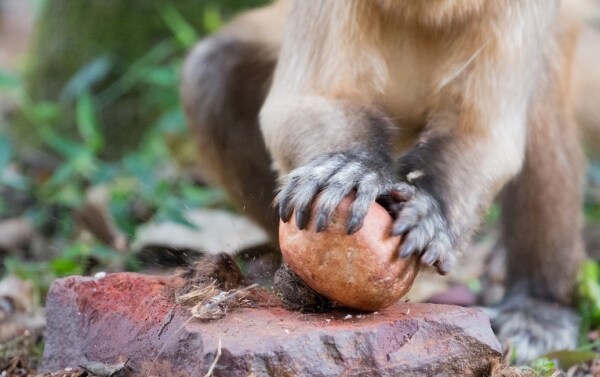 카푸친원숭이 돌을 이용하고 있는 중