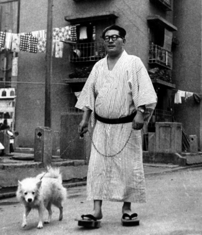 배경 사진에 역시 할복 자살한 미시마 유키오도 보인다.
