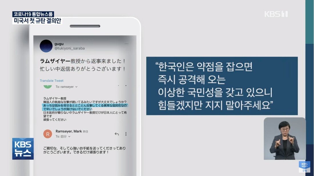 어떤 일본인이 하버드 교수라는 램지어라는 놈한테 한국 국민성을 말함