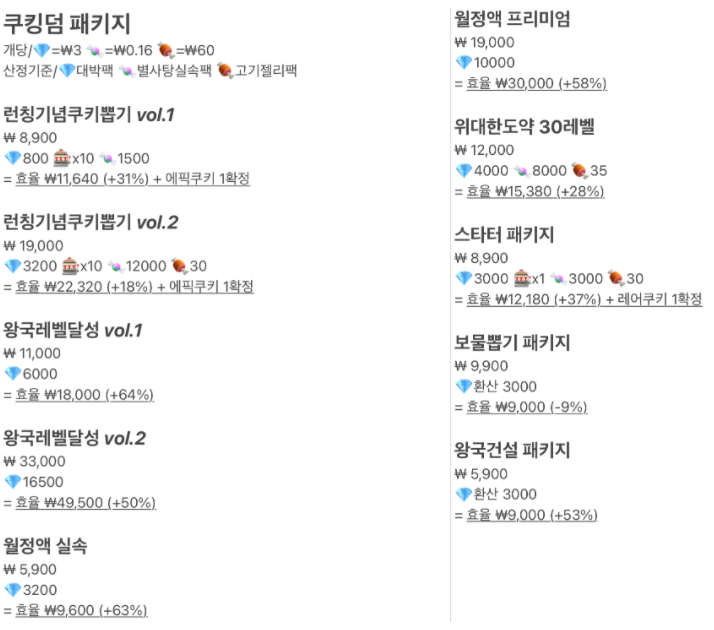 목록에는 없지만 킹덤 패스 혜택이 넘사벽으로 좋으니 꼭 구매하는걸 추천합니다.