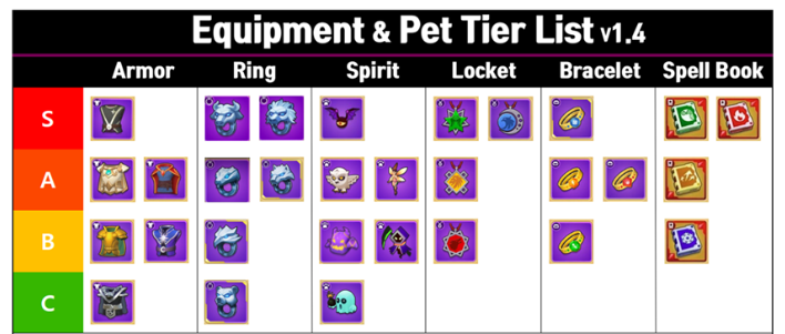 의외로 스피릿, 사실 펫같은 경우에는 전부다 투과 공격이 가능한 레이저로 바꾸는 것이 좋긴 한데 저는 완에픽 미련을 못 버려서 요정 하나를 쓰고 있지요. 그래도 S, A급이다보니 실력만 받춰주면 깨는 조합이네요. 스펠 북은 가장 별로네요.