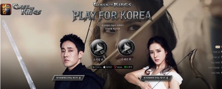 <라이즈 오브 킹덤즈>는 <클래시 오브 킹즈>엔 없던 BM을 추가하고 콘셉트를 변형한 듯하다는 인상을 받았습니다. 사령관 뽑기와 성장 시스템은 말씀을 드렸으니 콘셉트 이야기를 해보겠습니다. <클래시 오브 킹즈>는 "한국 유저들의 도움이 필요하다"는 애국심이 마케팅 키워드였습니다.