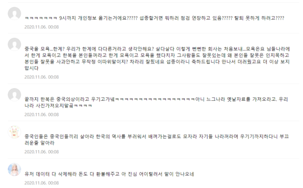 샤이닝니키 한 이용자는 "살다살다 이렇게 뻔뻔한 회사는 처음 본다. 한국 이용자가 중국을 모욕한 것이 아니라, 중국에서 한복을 자기들 것이라고 우기며 모욕을 한 것이다"라며 "서비스 종료 축하한다"며 강한 불만을 드러냈다.